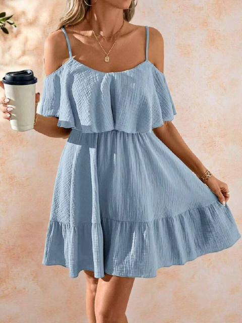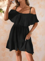 Женское платье из муслина с открытыми плечами и воланом