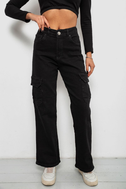 Джинси жіночі однотонні Kargo, колір чорний, 244R00946
