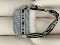 Сумка Christian Dior Bobby на широкому ременці сіро-чорний текстиль