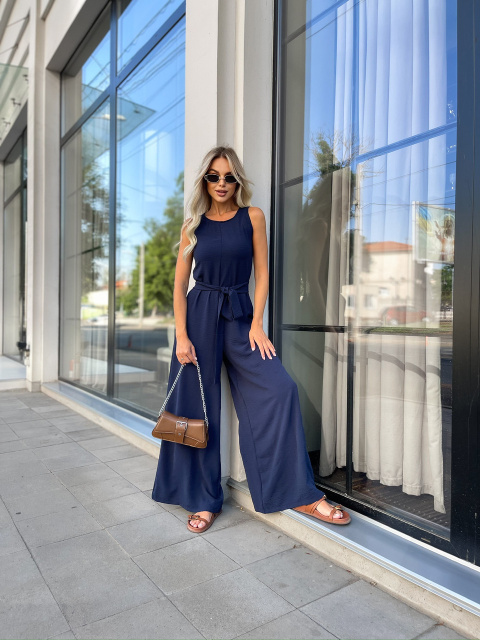 Верхняя часть комбинезона имеет мягкие линии и удобный крой, который подходит для любой фигуры. Мягкий тканевый пояс акцентирует на талии и делает силуэт соблазнительным и женственным.