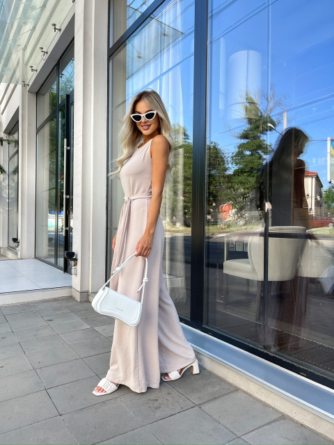 Верхняя часть комбинезона имеет мягкие линии и удобный крой, который подходит для любой фигуры. Мягкий тканевый пояс акцентирует на талии и делает силуэт соблазнительным и женственным.