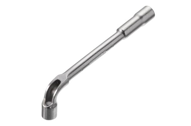 Ключ торцевой с отверстием L-образной формы. Обе головки имеют одинаковый размер (длинный конец имеет 6 граней, а короткий 12). Размер ключа: 7 мм