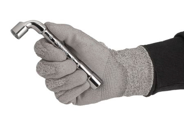 Ключ торцевой с отверстием L-образной формы. Обе головки имеют одинаковый размер (длинный конец имеет 6 граней, а короткий 12). Размер ключа: 12 мм
