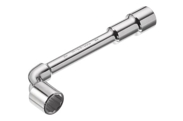 Ключ торцевой с отверстием L-образной формы. Обе головки имеют одинаковый размер (длинный конец имеет 6 граней, а короткий 12). Размер ключа: 20 мм