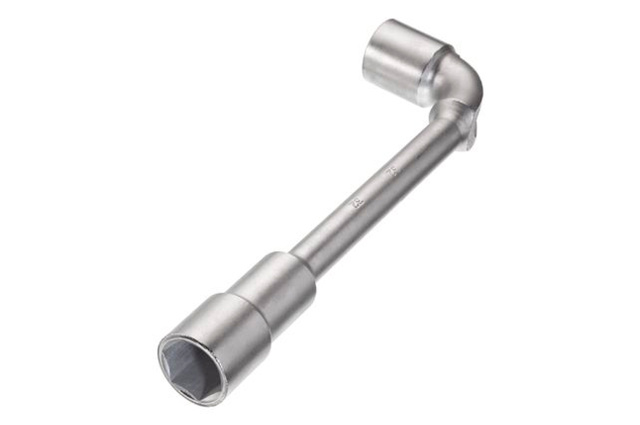 Ключ торцевой с отверстием L-образной формы. Обе головки имеют одинаковый размер (длинный конец имеет 6 граней, а короткий 12). Размер ключа: 32 мм
