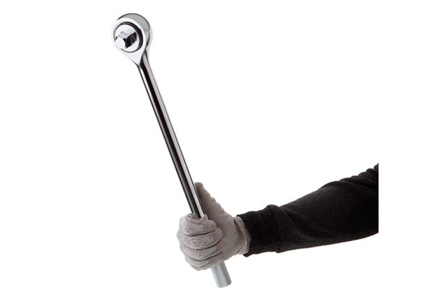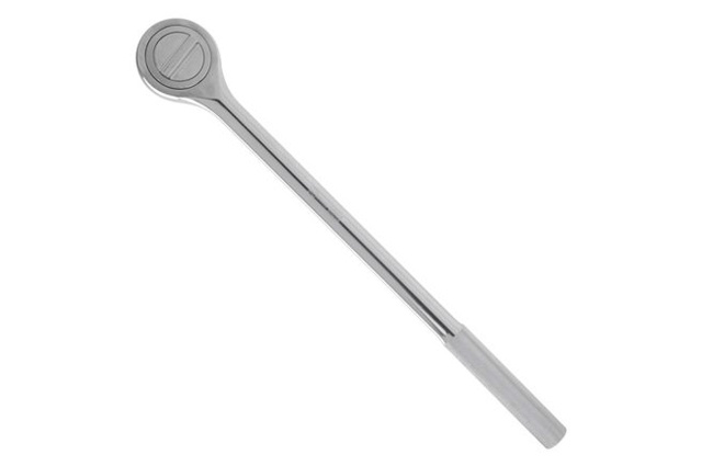 Хром-ванадиевая сталь, квадрат 3/4". Рукоятка с насечками. Трещотка имеет флажок переключения направления вращения и кнопку быстрого сброса головки. Длина 500 мм. Количество зубьев: 45; Квадрат: 3/4"