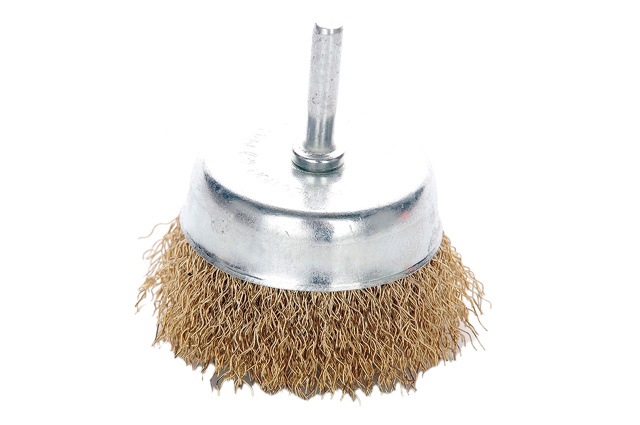 Щетка торцевая (чашечная) с рифленной проволокой для дрели. Предназначена для работ по дереву, бетону, металлу и лакокрасочным покрытиям.