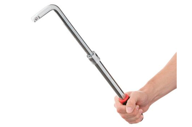Ключ баллонный телескопический HT-1599 имеет L-образную форму c посадочным квадратом для головок 1/2". Применяется для монтажа и демонтажа гаек и болтов в колесах автомобилей. Это полезный помощник в гараже у владельцев транспортных средств, а также незаменимый инструмент на СТО и в шиномонтаже. Материал изготовления Ключ изготовлен из высококачественной Cr-V стали, которая известна всем мастерам своей надежностью и выносливостью. В составе этой стали присутствуют хром и ванадий, которые придают изделию высокую стойкость к износу. Также сталь отличается долговечностью и не подвержена хрупкому разрушению. Ключ покрыт антикоррозионным слоем. Функциональность В разложенном виде телескопический ключ имеет увеличенное плечо усилия, что позволяет получать большой момент, тем самым увеличить силу воздействия на крепеж, что недоступно обычным баллонным ключам. Телескопическая рукоятка может менять длину рычага (390-530 мм), тем самым регулировать усилие. Это намного упрощает работу и позволяет экономить силы оператору. Также с помощью телескопической ручки вы можете достать крепеж в любом труднодоступном месте без использования дополнительных переходников. Удобная рукоятка Форма ручки обеспечивает максимальную эффективность от приложенного усилия. Двухкомпонентная рукоятка гарантирует отличное сцепление даже с влажными или скользкими руками, благодаря резиновым вставкам. Квадрат: 1/2"