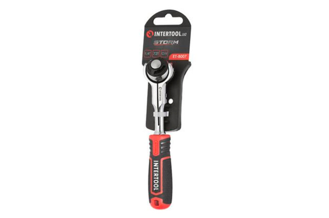 Ключ трещоточный (рукоятка с храповым механизмом) Intertool 1/4« x 72T поворотный Storm (ET-8007), Вінницька область