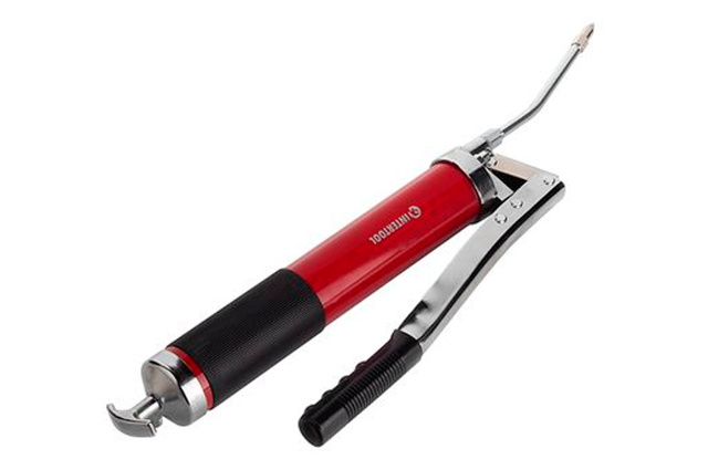 Шприц технический предназначен для внесения консистентной смазки в узлы и агрегаты. Используется для обслуживания карданного вала, подшипников шаровых опор, зубчатых передач. Рабочий объем шприца составляет 500 мл, он заполняется смазкой вручную, а также может использовать смазку в тубусах. Наличие в конструкции двух поршней увеличивает количество смазки в два раза, подаваемую за одну прокачку ручкой-рычагом, в результате процесс смазывания деталей вдвое ускоряется. Инструмент полностью изготовлен из металла с толстыми стенками, он прочен и долговечен, устойчив к коррозии благодаря порошковому покрытию.