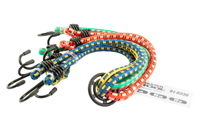 Резинки багажные Mastertool – предназначены для фиксации грузов во время транспортировки. Используются в автомобилях, велосипедах, скутерах, мотоциклах, сумках-тележках, тачках и т.д. Длина: 600 мм. Диаметр 8 мм. Количество крюков 8 шт.