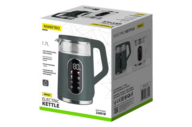 Электрочайник стеклянный Maestro 1.7л LED зеленый (MR-023-GREEN), Вінницька область